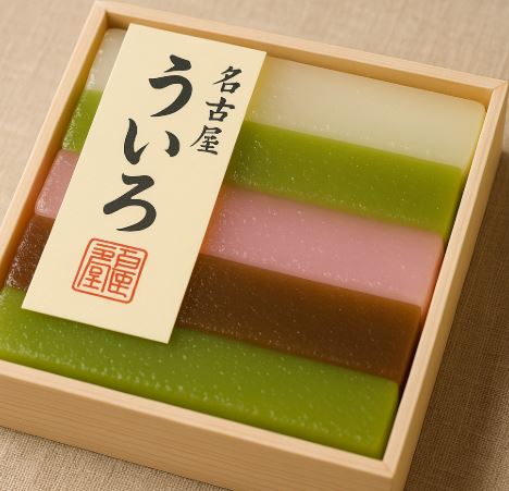 우이로는 나고야를 대표하는 전통 과자로, 쌀가루, 설탕, 물을 섞어 쪄낸 떡 같은 과자입니다. 생산 방법은 쌀가루를 체에 걸러 고운 반죽을 만든 후, 설탕물과 혼합해 나무틀에 붓고 찜기에 넣어 30~40분간 쪄내는 방식으로, 방부제를 넣지 않아도 며칠간은 말랑말랑한 식감이 그대로 유지합니다.